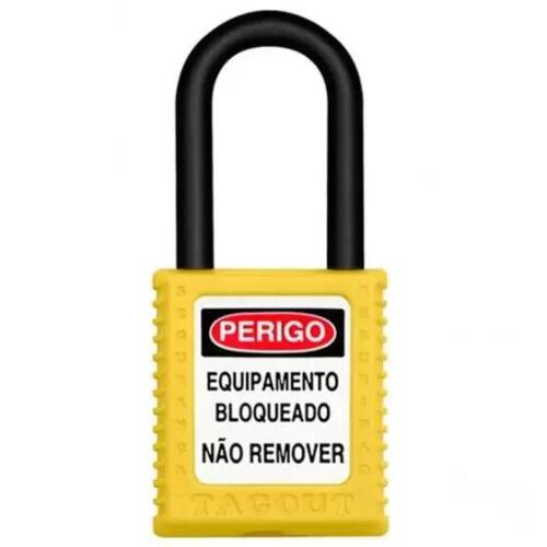 CADEADO BLOQUEIO AMARELO PLASTICO C/ HASTE PLASTICA 38MM TAGOUT