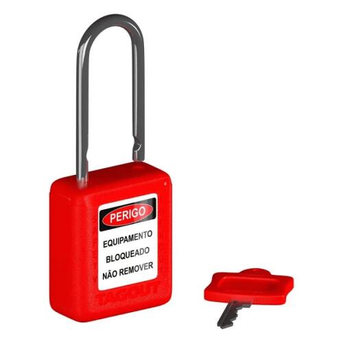 CADEADO BLOQUEIO VERMELHO PLASTICO C/ HASTE PLASTICA 38MM TAGOUT
