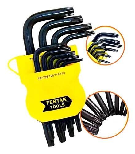 JOGO CHAVE TORX TIPO "L" T10 A T50 LONGA 9 PCS FERTAK