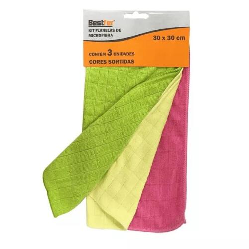 KIT FLANELAS DE MICROFIBRA 30 X 30CM 3 PCS BESTFER